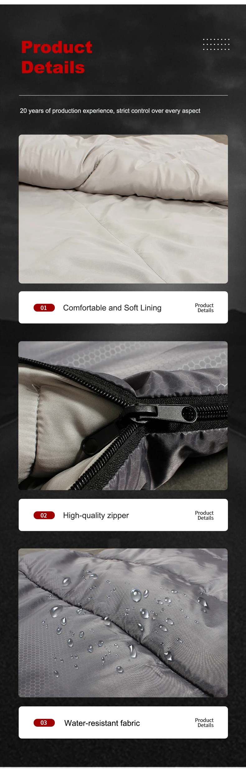 | Features and Benifits: | A must have for hiking. backpacking. and camping. the perfect balance of performance and lightweight materials for every adventure. Each sleeping bag comes with a compression sack with straps. which makes it super convenient to store and easy to carry. | ||