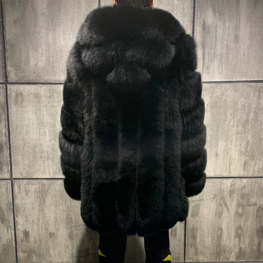 Winter Hooded Natural Fur Coats Fluffy Warm Fox Fur Coat Men’s Hoodie Fox Fur Coat
